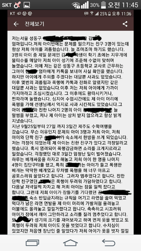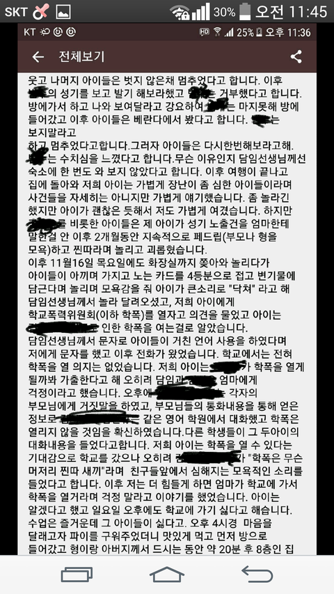 미래의 내 아이에게 일어나는 일일수도 있습니다. 서울 행현초라던데....요새 아이들 무섭습니다.