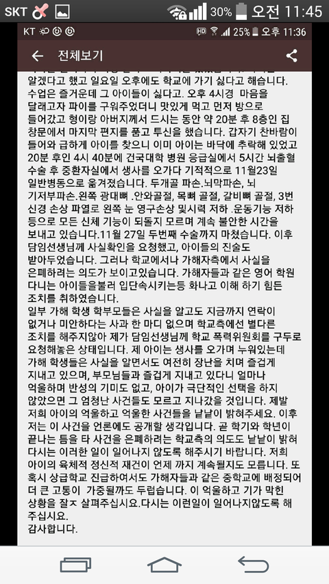 우리나라에 이미 여러 큰 학교폭력 사건이 있어서 이런것쯤이야~하실수도 있겠지만...