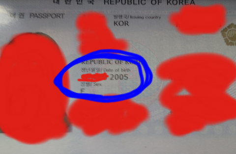이건 13살 인증(여권사진)파란색 동그라미 안에 잘보셈 2005라고 되어있음 날짜는 지움