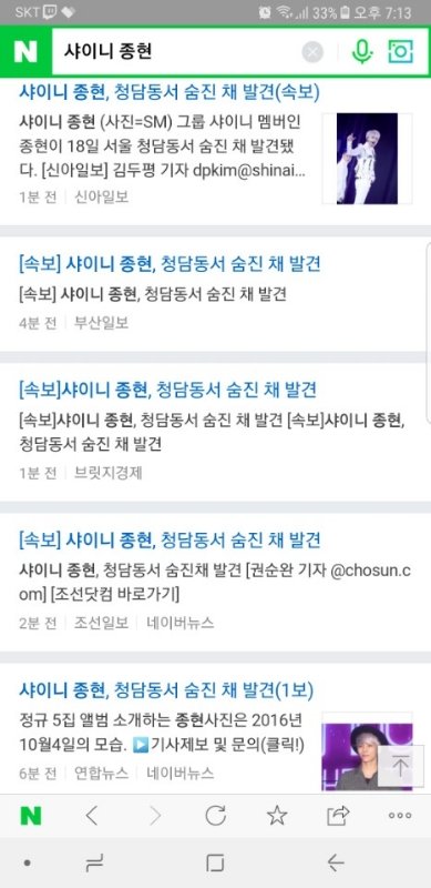 샤이니 종현 숨진채 발견