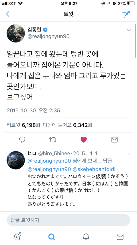 시ㅂ 팬도 아니였고 그닥 관심가지지않았던 연예인인데 왜이렇게 마음이아프냐 하나하나 글읽은거보는데 여태껏자기도 너무힘든거 방송에서나팬들한테티못내고저렇게 글적은거 왜이렇게맘아프고그러지 차라리 집에혼자가아니였고 데뷔초기여서멤버끼리같이지냈다면 종현이 기대고털어놓을수있는곳이 있지않았을까