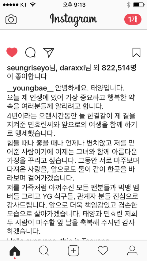 태양 드디어 민효린하고 결혼한데 잘았음좋겠다! 그리고 종현 진짜 넘 안타깝다..솔찍히 샤이니 팬은 아니었는데 구탱이형 그분 생각나는것같기도 하고 넘슬픔 ..샤이니 팬이었던얘들 충격 클거 같은데 힘내고 .!