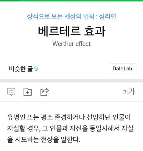 이거 진짜 엄청 무서운건데 유명인일수록 베르테르 효과 쎄다고..