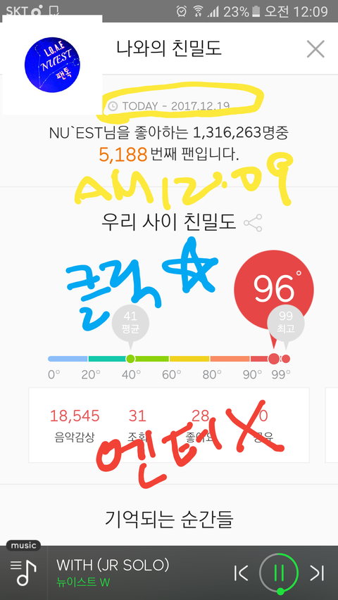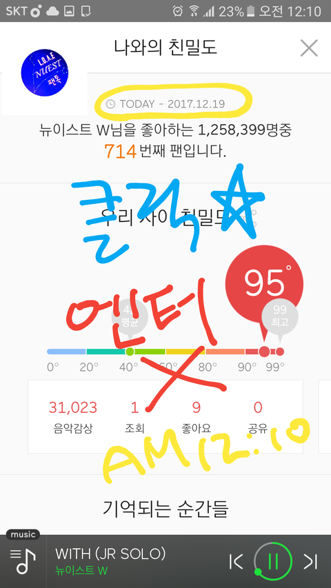 인증은 12시 넘어서라 친밀도도 첨부했어.