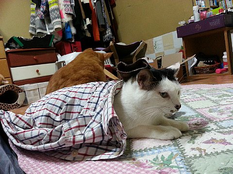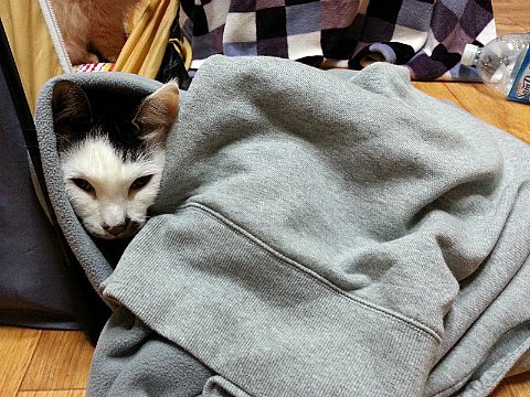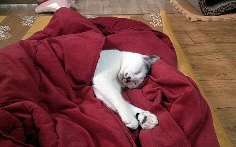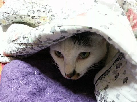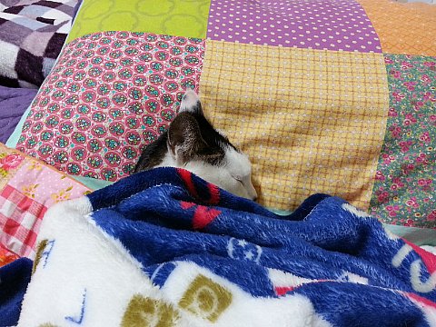 덮은 이불이 얇지요. 여름 혹은 봄이었던 것 같아요. 쵸이의 이불 사랑은 계절을 가리지 않아요.