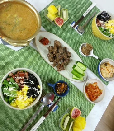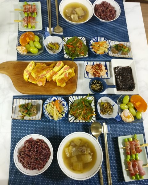 소고기뭇국에 계란말이 베이컨아스파라거스가 메인입니당
