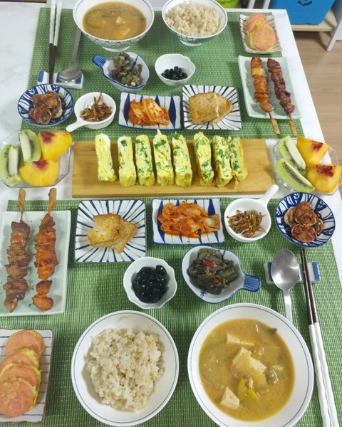 요새 다이소 그릇들이 이쁘더라구요. 천원씩 그릇 털어와서 식판처럼 차려보앆어요. 별거어닌데 남편이 좋아하더라구요