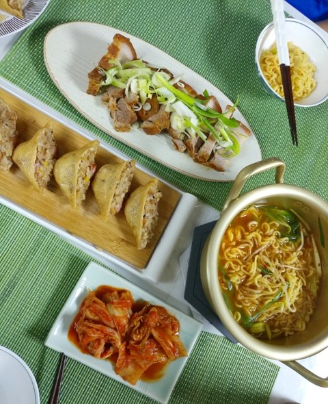 이날도 주말이었는데, 유부초밥에 전날 맥주와먹었던 수육남은걸 라면과해치웎지요. 라면은 스프반만넣고 새우젓으로 간을했어요!