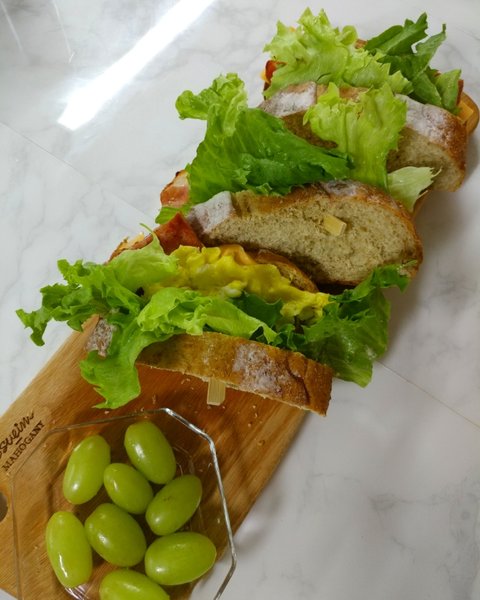 토마토가 있었다면 더 좋았을걸요. 호밀빵사다가 뜌레빵집의 샌드위치를 흉내내보았어요.