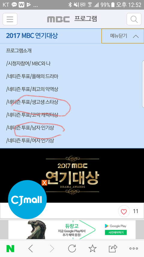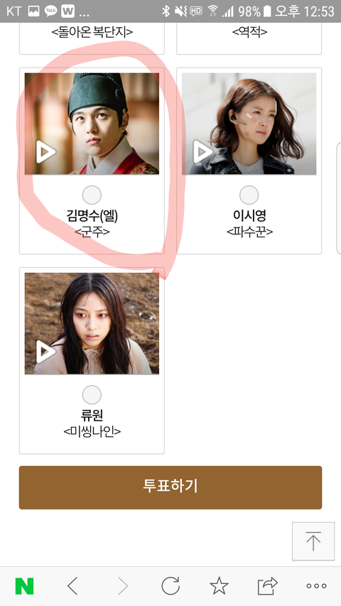 남자인기상 생고생 캐릭터상 올해의 드라마 군주도 투표하자