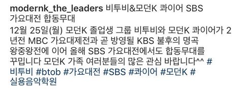 모던 k 졸업생 그룹 비투비와 모던 콰이어의 합동 무대래