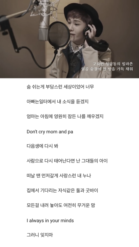 나 이거 매일 듣는데.. 특히 ' 내일 아침 끝나겠지 스스로의 고문 숨쉬는게 부담스러운 세상이었어 ' 이거 너무 슬프다