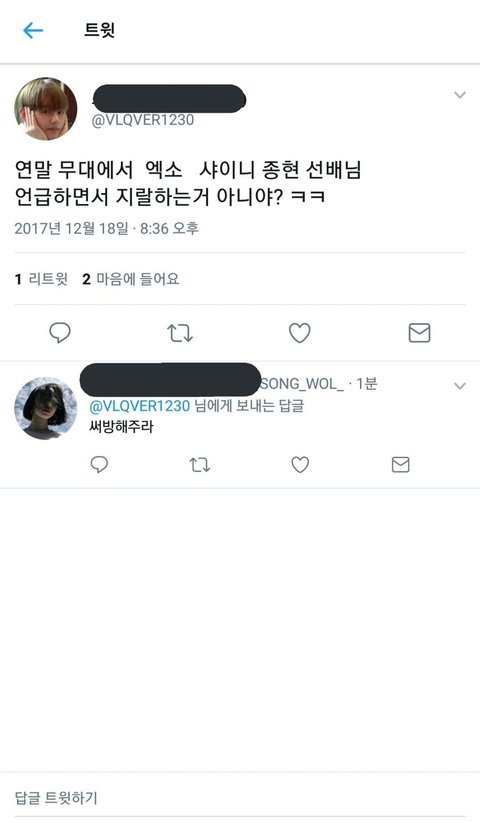 어제도 같은 문제로 사과를 드렸지만 같은팬이니 상처받으셨을 모든 분들께 죄송합니다. 종현님을 좋아했던 아미로써 아직 믿기지 않고 가슴이 먹먹합니다. 부디 좋은곳으로 가셨길 바랍니다. 삼가 고인의 명복을 빕니다.