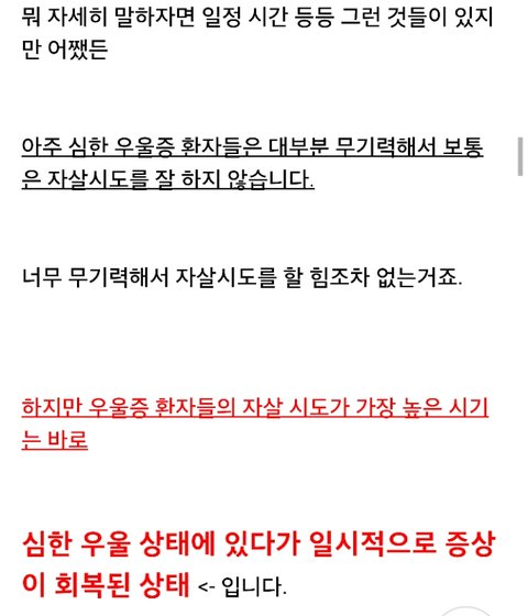 일시적으로 증상이 회복된 상태라니... 무서운 질병이었구나 우울증이..