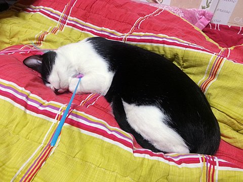 퇴근하고 저녁밥 차려서 한 숟갈 뜨려고 하면 장난감을 제 옆에 내려놓고 냥냥냥~ 하고 노래를 부르는데 귀엽지만 살짝 부담스러운 면도 없잖아 있습니다.