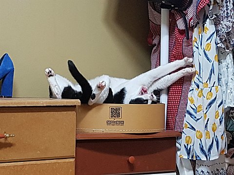 좁은 박스에 몸을 구겨 넣고 편안히 숙면도 취해요. 사랑스러운 엉덩이~