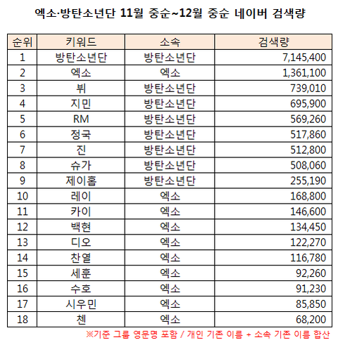 엑소 처참하다 둘다 비활동기인데 ㅋㅋㅋㅋ