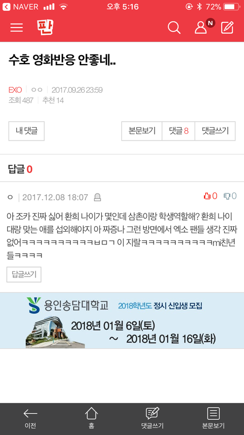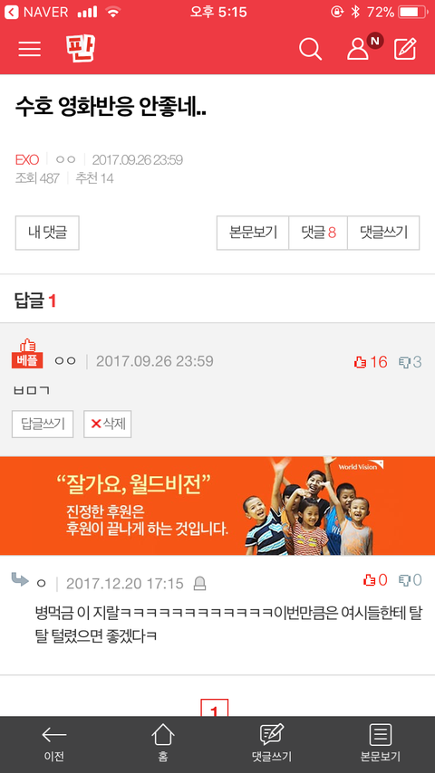 소름돋아 3달전글에 갑자기 욕답글달림