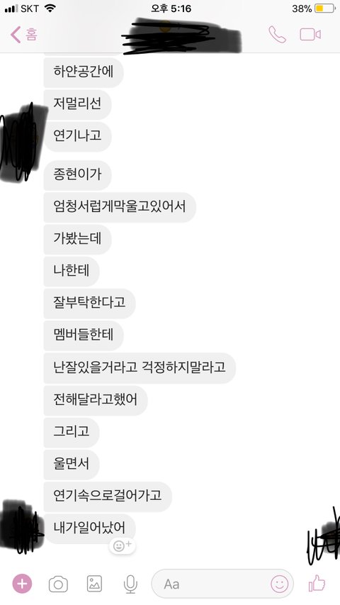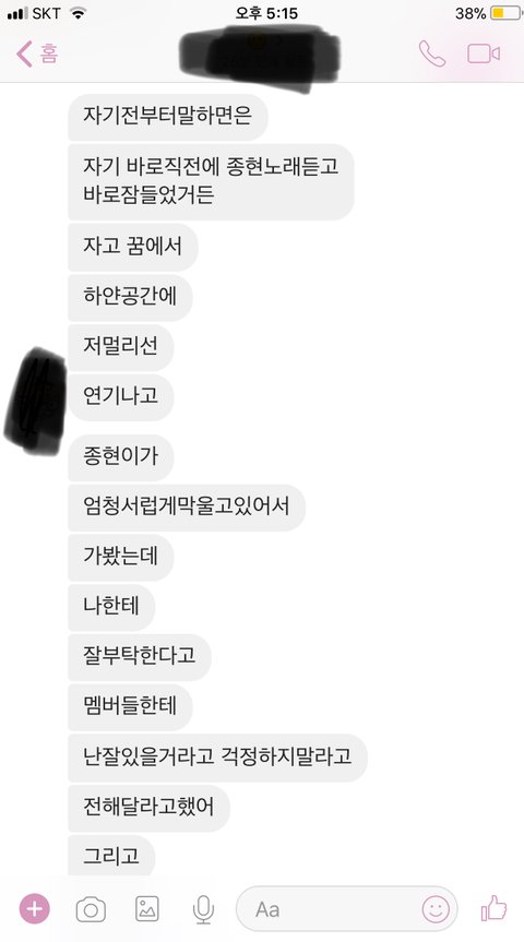 꿈내용은 이런대 학교에서 얘기들었을땐 종현이가 엄청서럽게 울었었대