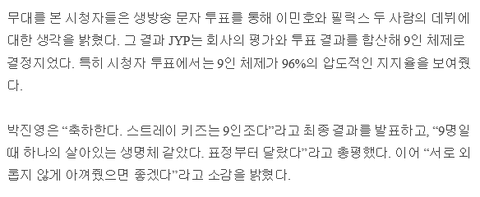 어제 JYP 남돌 스트레이 키즈 최종데뷔 생방송이 있었는데
