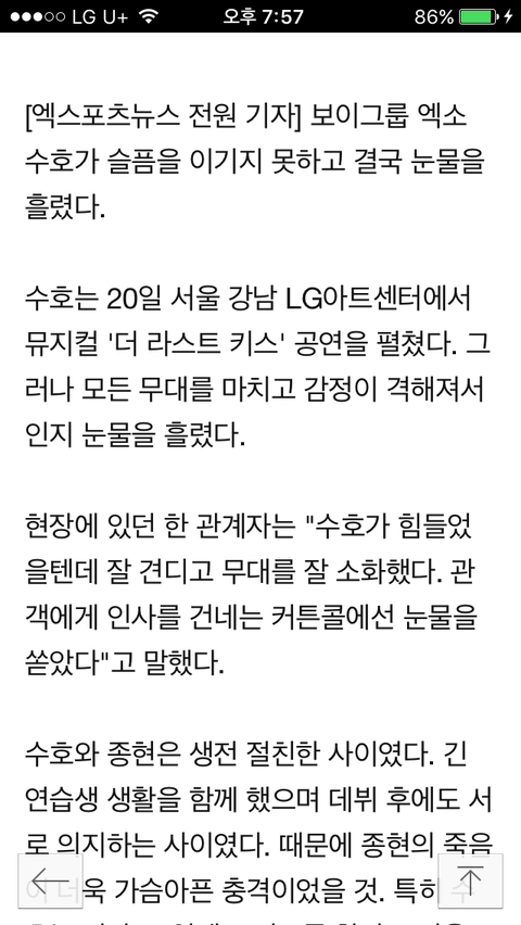 에스엠 아티스트들 심리상담 한번씩 시켜줘라. 다들 너무 멘탈 타격이 클꺼같다 수호나 태연 샤이니 멤버들은 특히나 더 필요할꺼다 본인들이 의지하던 사람이 세상에서 의지의 끈을 놓는다는건 엄청난 충격일꺼임