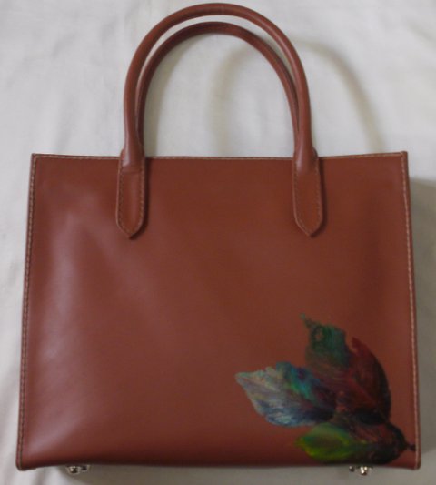 가죽에 나뭇잎을 페인팅하여 수작업으로 제작한 핸드메이드 서류가방 겸용 백입니다.(마디샤-madisaart)