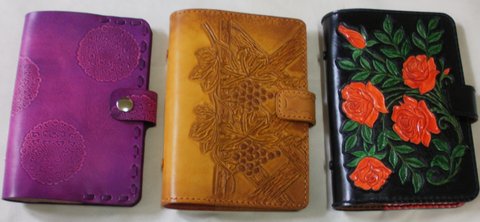 가죽에 장미,포도,고전문양 등을 카빙 및 스탬핑하고 천연염색하여 제작한 핸드메이드 다이어리입니다.(마디샤-madisaart)