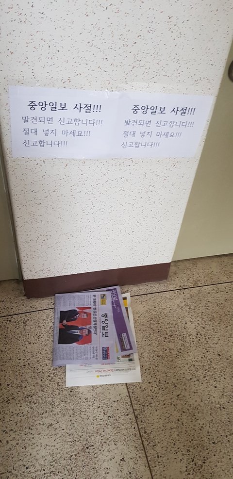 물론 집앞에 떡~허니 "중앙일보 사절"도 붙여놓았지요...