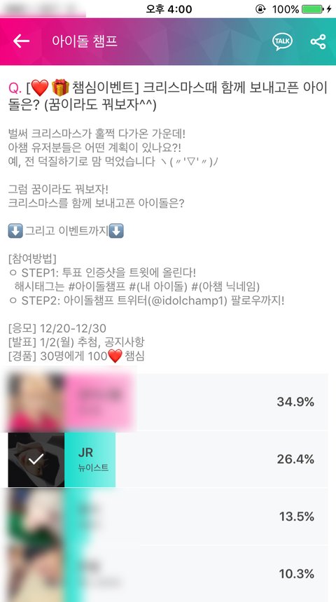 아/이/돌/챔/프(앱)-[♥챔심 이벤트] Merry Chrismas! 크리스마스때 함께 보내고픈 아이돌은? (꿈이라도 꿔보자^^)(2017.12.20~2018.01.03)