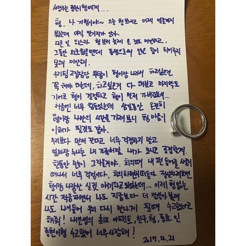 기범이가 종현이에게 인스타에 올린 편지