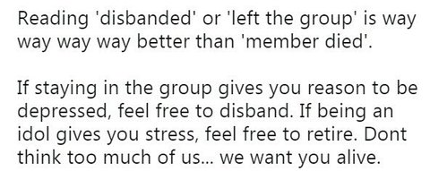 아이돌일 하는게 힘들다면 언제든 은퇴하세요..
