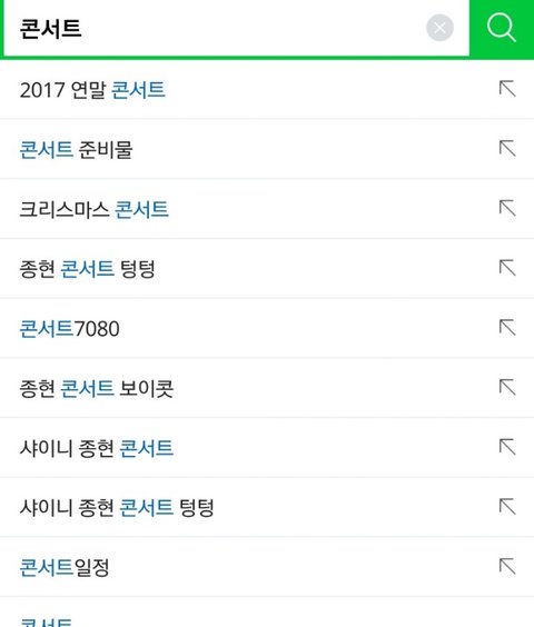 아래 사진은 현재 콘서트라는 검색어에 뜨는 자동 연관검색어입니다.