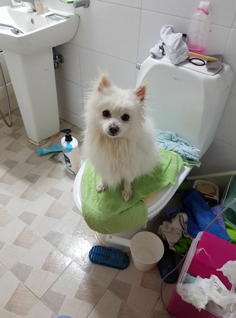 짠 ! 샤워하고 바로찍은모습 표정이 겁먹은거처럼보이죠.. 애가 낯을많이가리는거같았어요 ㅠㅠ