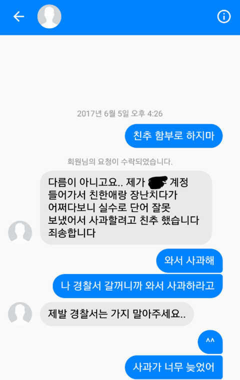 3.내가 다시 물어보고 진짜 경찰서 갈일이다 그랬음