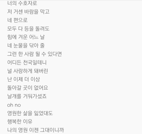나중에 대충 들리는 가사가 좀 예쁜거같아서 찾아봤는데 너무 직접적으로 천사를 표현해서 소름돋음...ㅇㅇ 진짜 참 예쁜노래같고 진짜 신기함이런거 아이돌 수록곡에서 직접적으로 드러낸게 걍 예상치못했다해야하나