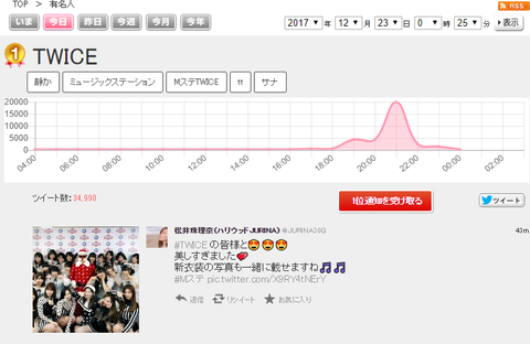 오늘 방탄이랑 같이 엠스테 나온 트와이스는 단숨에 유명인 트윗랭킹 1위 상승.