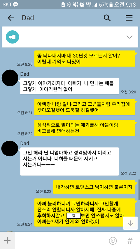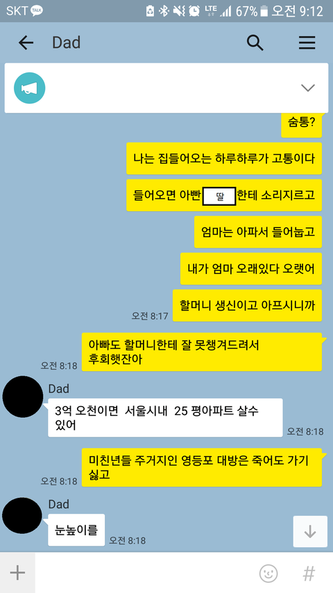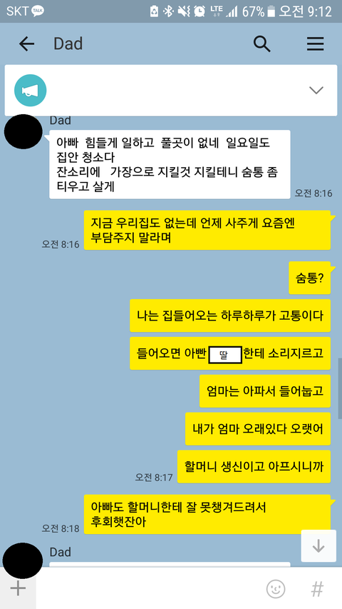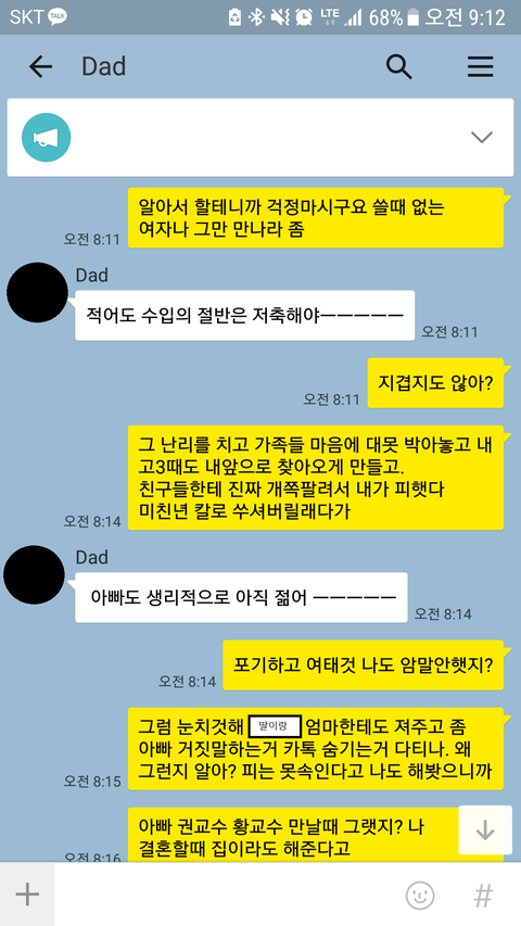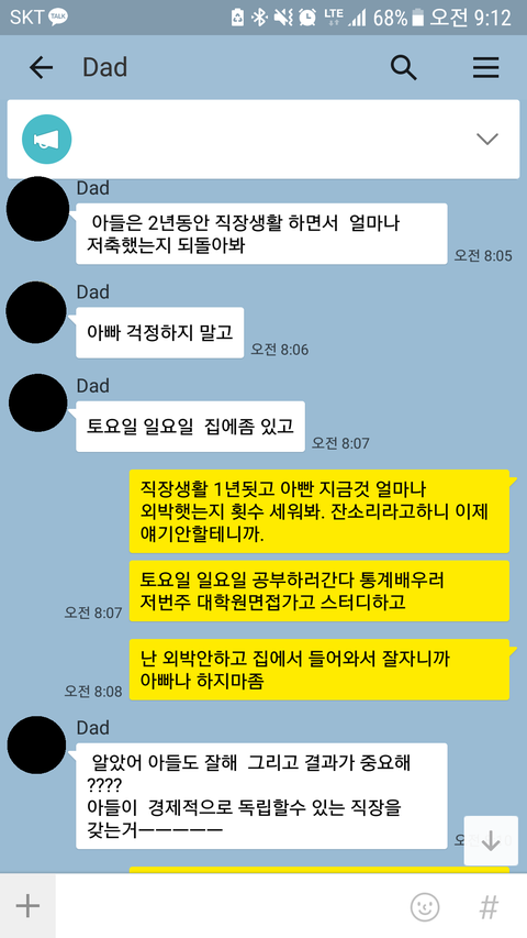 저희 아빠랑 오빠가 주고받은 카톡입니다.
