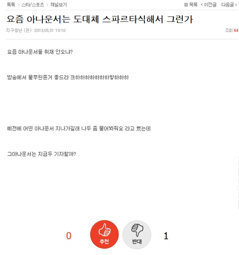 올린 날짜와 내용을 보면 정인영 아나운서가 야구장에서 물벼락 봉변을 당한 사건이 있던 무렵에 올린 글 같은데....