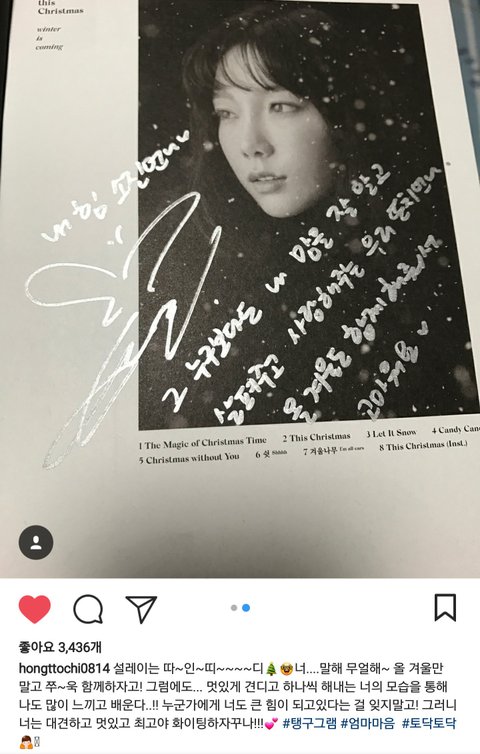 태연이 주변사람들한테 잘하고 팬들한테 잘하는거 유명하지않나