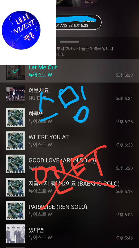 내 핸펀 뮤직플레이에서 다운받은 해당곡 삭제 +