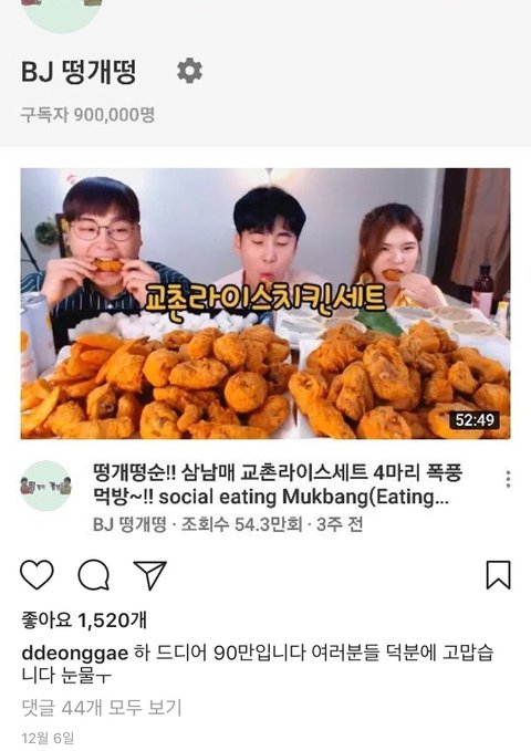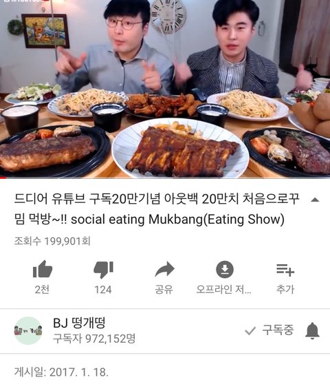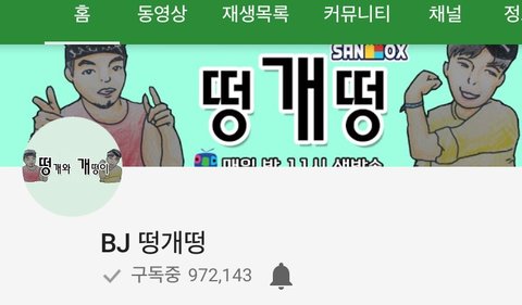 방금 캡쳐한 떵개떵 구독자 수 97만 ㄷㄷ