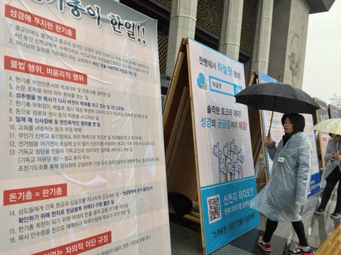 한기총(개신교)의 주 세력인 장로교는 일제때 기독교인들을 선동하여 신사참배를 하였고 기미가요를 제창하였습니다.