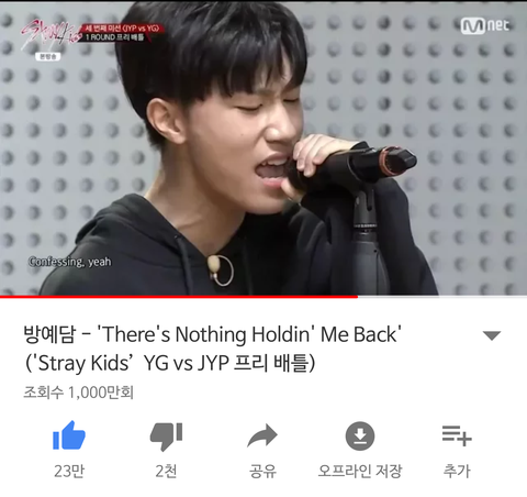 안 본 사람은 있어도 한 번만 본 사람은 없다는 그 전설의 방예담 There's nothing holdin' me back 영상이 어제자 드디어 유튜브 조회수 1000만회를 넘어섰어