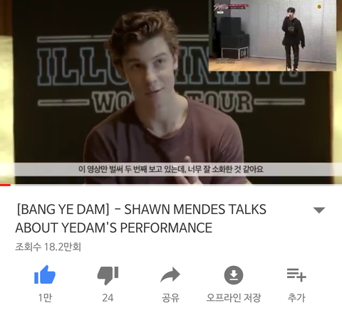게다가! 드디어 이 곡의 원래 가수인 Shawn Mendes 까지 이 영상을 보게 됨