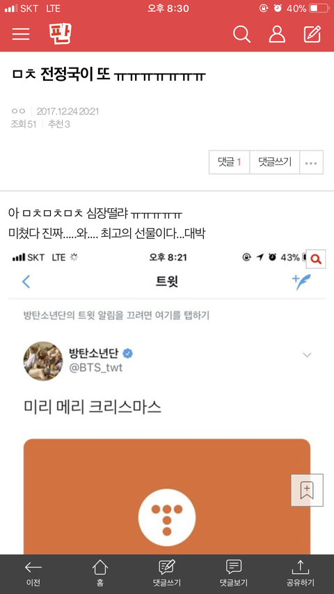 헝전정국이..... 나 다운받앗어 운좋아서 나누어줄게 이삐들