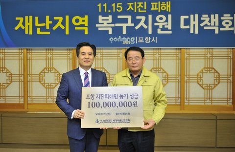 이웃과 사회에 헌신적인 봉사를 해온 하나님의교회 세계복음선교협회가 포항 지진피해민들을 돕고자 1억원의 성금을 기탁했다.