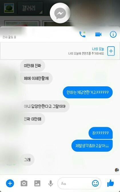 앗녕 판 처음해봐 많이 미숙하고 그래도 언니들 이해해줘ㅎㅎ얼마전은 아니구 몇달전일이긴 한데 그때도 판에 올리려고 생각은 했었는데 일이 너무 커질까봐 무서웠어 지금 글을 쓰는 이유는 어디다 털어놓고 싶어서ㅎㅎ 근데 내가 아직 학생이다보니까 일이 커지고 그러는게 곤란하기도 해 만약 눈치채더라도 그냥 그러려니 해줬음 좋겟어ㅎㅎ 자 이제 이야기 시작해볼게 그 현직아이돌인 그새끼 형을 ㄱ이라 칭하고 그새끼를 ㄴ으로 칭할게 일단 ㄱ은 데뷔한지 얼마 안된 살짝 듣보잡 소속사에 인기도 많지않고 그저그런 그룹의 멤버야 근데 그런 와중에 ㄱ이 인성논란이 있더라?ㅋㅋㅋㅋ연예인 한분을 깠나봐 그런데 소속사에서는 사칭이네 어쨌너 무슨 법적대응한다고 하더라구 그래서 ㄱ인성논란은 사실과 다르다고 그러더라구 그래도 욕먹는건 똑같은거 같더라 그래서 이때 느꼈지 동생이나 형이나 안타깝다하고ㅋㅋㅋㅋ이제 형 소개?를 했으니까 중요한 동생ㄴ얘기를 해볼게 ㄴ은 어찌저찌해서 사귀게됐어 장거리였고 굉장히 인생 막사는분이셨어 보호관찰? 막 뭐 소년원도 간다하고 미성년자였어도 담배 술 기본이었지 뭐 이건 주변에도 엄청 많긴 하다만 그새낀 뭔가 범접할 수 없는 재활용 불가인 인생을 사신분이심 어쨌든 이런새끼랑 사귀게 됐어 ㄴ이 고백을 했고 병신같이 그걸 또 받아버렸어 내가 그당시에 페북을 안했단 말이지 그래서 일이 커졌던거 같아 ㄴ은 막 문제아지만 영화에서처럼 한줄기 희망을 놓치지 않고 자긴 성공할것이라는 마냥 가수가 되겠다고 항상 노래를 불러줬어 솔직히ㅋㅋㅋㅋㅋ너무 말도 안됐거든 진짜로 노래는 잘하는데 가수되면 과거 인성논란 크게 터져서 시작도 전에 매장당할각이었어ㅋㅋㅋ그래도 노래 불러주는거 마냥좋고 그랬거든 근데 딱 일이 터진거지 나한테 소년원을 간다하더라고 오토바이 무면허 3번이상 걸려서 간다고 그랬는데 구라일수도 있고! 어쨌든 소년원 나오면 학교 자퇴하고 너 사는데 올라가서(난 인천 ㄴ은 전주였나?) 산다고 하더라 그래서 내가 친구한테 캡쳐해서 보여줬단 말이야 근데 그친구가 ㄴ을 페북에 찾아본다고 하더니 갑자기 식겁하는거야 그리고 페북에 나랑 사귀기 1달전부터 다른년이랑 연애중 떠있다고 그러는거야ㅋㅋ아니 지금 생각해도 어이가 없네 그래서 바로 화 못참고 욕박아버렸지 그렇게 엄청 심한욕들 해버리고 끝났는데 요새 주변 친구들도 판에 한번 올려보라고 그러더라고 진짜 일커지는건 싫었는데 그냥 살다가 이런일도 있었다 끄적여 보고싶엇져ㅎㅎ글진짜개못쓰는데 읽어줘서 고마워!ㅇ! 흥미진진하라고 페메내용 캡쳐본 올릴게유 차례대로인데 중간에 ㅍㅁ내용 삭제했었어서 끊겼어! 긴글읽어줘서 고마워 언니들ㅎ헤헤 아직까지 고민인데 이거 크게 터트려서 둘다 _되게 만들까 고민이거든 어떻게 했음좋겠는지 조언좀해주랑