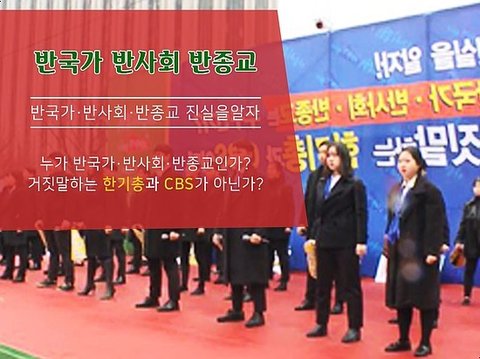 진리가 있는 신천지에 교인들이 가는 것을 막기 위해 거짓말을 지어내 신천지를 반국가.반사회.반종교라고 뒤집어 씌운 한기총과 CBS의 만행을 20여 만명의 신천지 성도들의 이름으로우리 5천 만 국민들에게 진실을 알리는 바입니다.