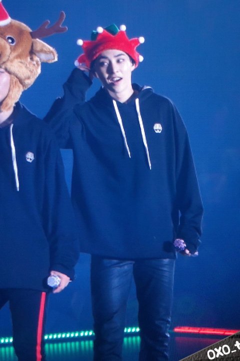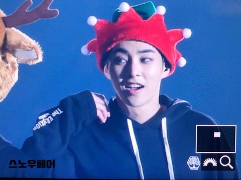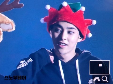 시우민 찰리와 초콜릿공장에 나올법한 모자를 쓰고