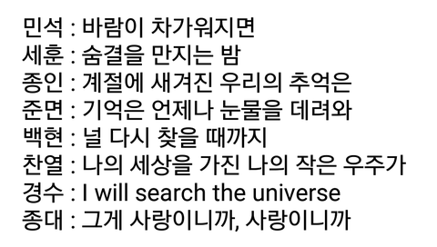 그리고 티저에서 나오는 나레이션은 타이틀곡 유니버스의 가사야 가사 넘 이쁘지않니ㅠㅠㅜㅜㅠ